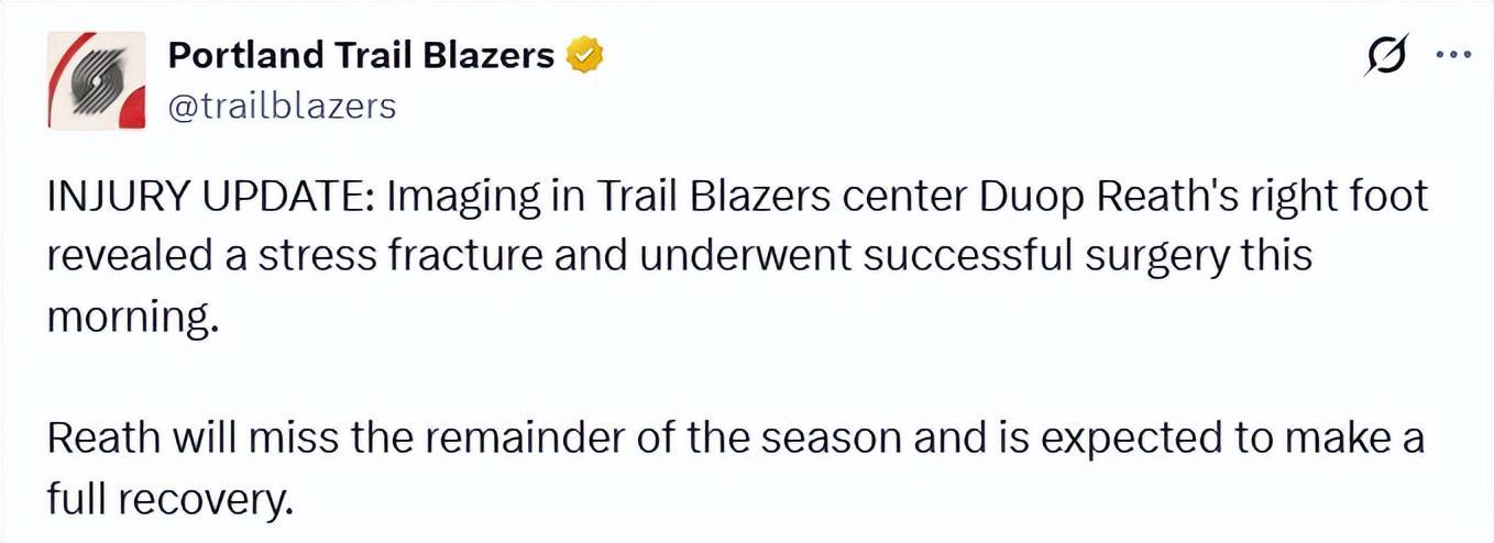 kaiyun-开拓者伤情更新!里斯接受右脚手术赛季报销 两大后卫接近复出